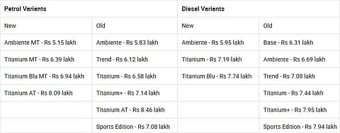 The new top-spec Titanium Blu variant also gets rain sensing wipers, automatic headlamps and a leather steering. These features were not available on the top-spec Titanium+ variant of the outgoing model.