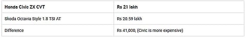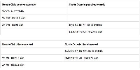 Honda has launched the tenth-gen Civic in India. It is available in three variants -- V,VX and ZX -- priced from Rs 17.7 lakh to Rs 22.3 lakh (ex-showroom pan-India). The new Civic comes six years after the eighth-gen model was discontinued in 2013. During all that time the Civic was away, the competition in the segment has grown fiercer, with the introduction of new models of cars like the Skoda Octavia, Hyundai Elantra and the Toyota Corolla Altis.