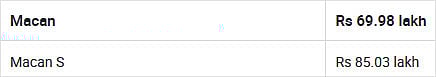 No Turbo variant at launch, but the Macan S performance variant gets 3.0-litre twin-turbo V6.