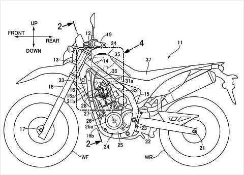 The 250cc liquid-cooled motor in its current form belts out 25PS and 22.6Nm of torque. One of the reasons why Honda is trying to fit in an extra spark plug in there could be to meet the upcoming European emission norms, which has forced bike makers to implement various ideas to make their engines much greener than before. While the current CRF250 features USD fork, but the patent images seem to show a conventional fork setup.