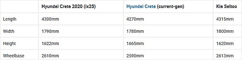 2020 Creta is longer, wider and shorter than current-gen SUV.