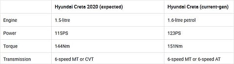 New Creta will use the Setos’ BS6 petrol and diesel engines.