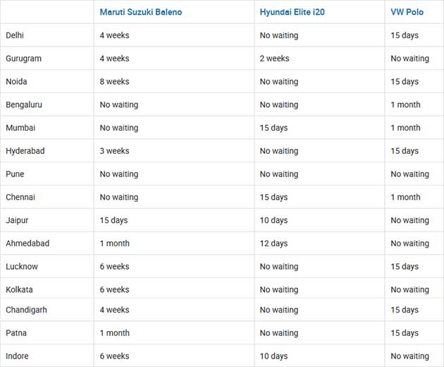 Planning to buy a premium hatchback this month? We have compiled a list of waiting periods in 15 cities across India to help you find out how long you’ll have to wait before getting your hands on your favourite car.
