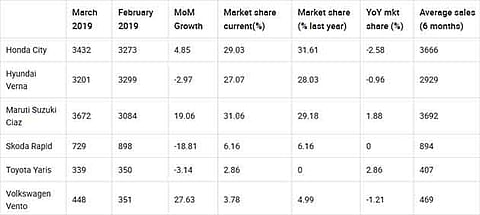 The top three contenders - Ciaz, City and Verna - make up almost 90 per cent of sales in the segment.