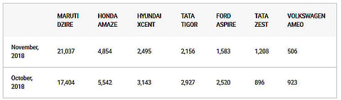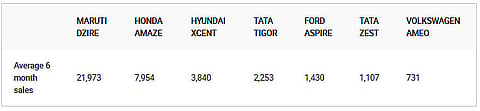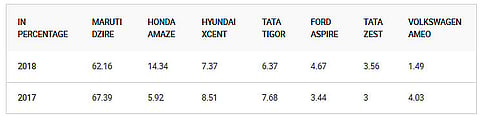 Honda Amaze retains second spot with a figure of 4,854 units. Witness 12 per cent drop in sales