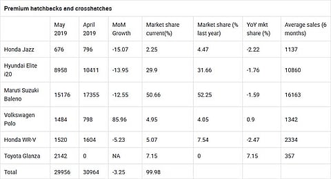 The only premium hatchback with a positive MoM growth in May 2019 was the VW Polo.