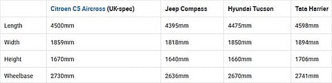 In terms of dimension, the Citroen is the second longest car after the Harrier. It also the second widest and tallest car in the segment. And while its wheelbase is longer than the Compass and the Tucson, it shorter than the Harrier by 11mm.
