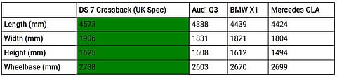 - DS 7 Crossback rivals Audi Q3, BMW X1 and Mercedes GLA in various markets.