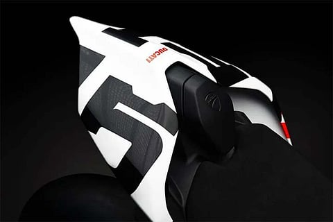 In profile, the new Streetfighter V4 looks identical to the Kawasaki Z1000. It gets minimal bodywork with the powerful V4 motor dominating the mean profile. The race livery also includes the number ‘5’ that was in Ducati’s teaser for the bike. Its tail section is similar to the faired Panigale V4, but with a flatter and wider one-piece handlebar optimised for road use. The prototype has a few winglets which are unlikely to make its way to the road-going bike.