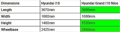 In terms of size, the Euro-spec i10 is smaller than the Grand i10 Nios. Have a look at the table below: