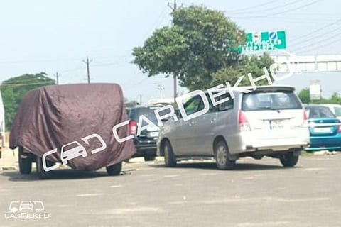 To meet upcoming crash test norms, the second-gen Thar is expected to be based on a new and bigger ladder-frame chassis. The spy shots of the test mule suggest that the new Thar is significantly wider than the outgoing version. It even dwarves over the Duster and Innova parked next to it. Apart from the size, the spy shots show that the new Thar is in its early stages of development as the camouflaged prototype features dummy lights, a canopy and smaller wheels. The new Thar, in all likelihood, will be underpinned by Mahindra’s new modular ladder frame chassis that debuted with the Marazzo.