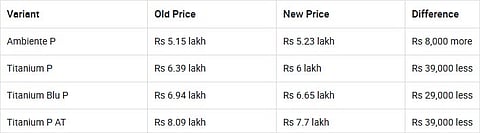 Top-spec Titanium Blu variant gets a price drop of upto Rs 39,000.
