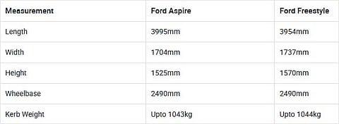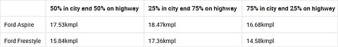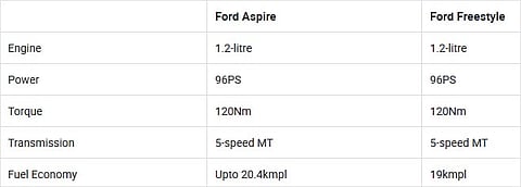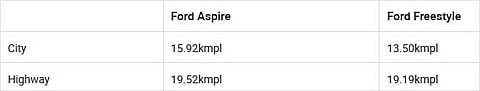 Despite being powered by the same engine-transmission combo, the Aspire is the more frugal of the two both in the city and on the highway. It delivers 2.42kmpl over the Freestyle in the city while out on the highway, it manages an additional 0.33kmpl.