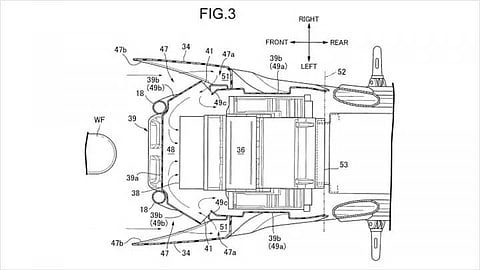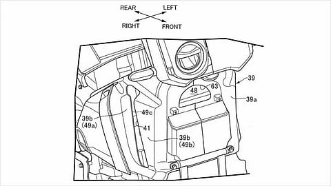 The new patent images reveal the motorcycle comes with ducts running along the sides. These ducts direct air to the fuel cell for cooling. The fuel cell reacts with the hydrogen stored in the tank under the seat, thus generating electricity. The power generated then goes to the electric motor which propels the motorcycle. Honda has incorporated a ‘turn’ in the duct which not only provides a turbulent air flow but also filters out the dust and prevents its ingress into the fuel cell. The warm air is then sent out from the rear, presumably via a fan.