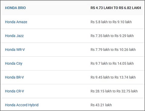 - Except for the CR-V, prices of all Honda cars will go up by upto Rs 7,000.