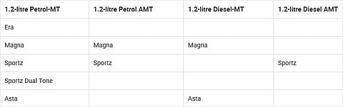 Top-spec Asta variant won’t get the AMT option with both petrol and diesel engines.