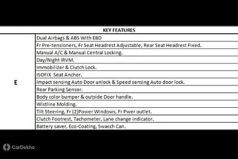 Base E variant misses features like rear power windows and body-coloured ORVMs.