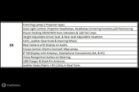 Sunroof, 8-inch touchscreen infotainment on offer from SX variant onwards.