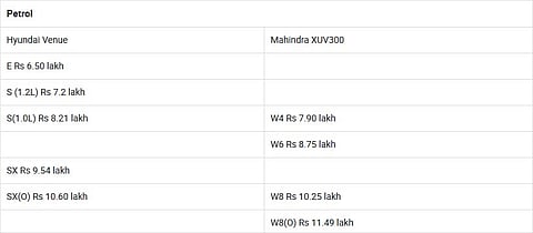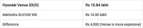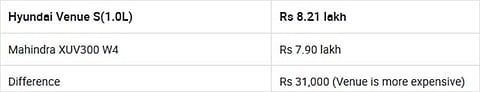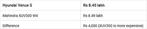 What Mahindra XUV300 W4 offers over Hyundai Venue S(1.0L)