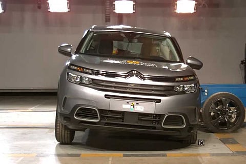 The C5 Aircross scored 87 per cent in adult safety. In the front offset test, the passenger compartment of the C5 Aircross was rated stable and readings indicated good protection of the knee and thigh bone of the driver and dummy. However, the protection of the lower leg for the driver was rated to be weak.