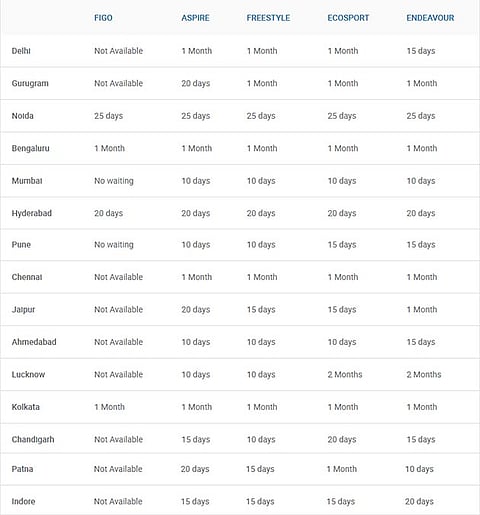 Planning to buy a Ford car this month? Here’s the waiting period for all Ford models across 15 major Indian cities: