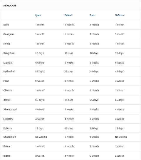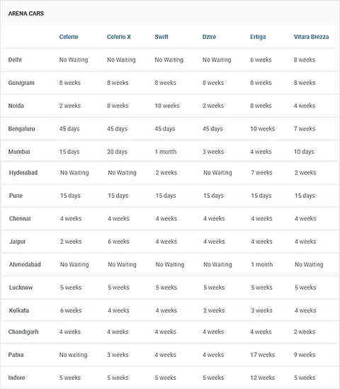 Other cars from Maruti Suzuki’s lineup that are not mentioned here can be delivered within 10-15 days from the date of booking. It is important to note that the waiting period for the cars in the table is an approximation as it would depend on the variant, powertrain option and colour chosen.