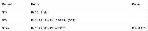 Top-spec GTX+ variant with the turbo-petrol-auto and diesel-auto to be introduced later while bookings for the same are currently open.