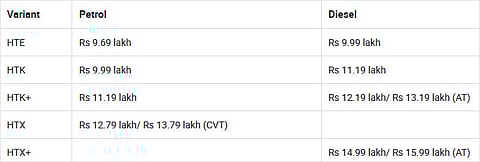 Prices range from 9.69 lakh to Rs 15.99 lakh (ex-showroom India).