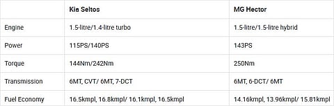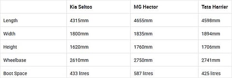Kia is all set to launch the Seltos in India. While the prices are yet to be announced, the carmaker has already revealed details of the compact SUV. Earlier, we had compared the Seltos to its direct rivals - the Hyundai Creta, Nissan Kicks, Maruti Suzuki S Cross and the Renault Duster. Now, let’s see how it fares against some similarly priced mid-size SUVs - the Tata Harrier and the MG Hector.