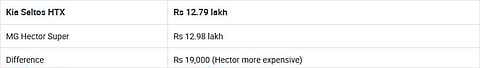 Kia Seltos HTX vs MG Hector SUPER