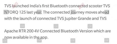 The feature kit on the TVS Apache RTR 200 4V is not less by any means. In the fully-digital info panel, it gets a lap timer, a 0-60kmph timer and a top speed indicator amongst other regular data. However, for the 2020 Apache RTR 200 4V, TVS will be kitting out with a more advanced version of its SmartXonnect Bluetooth module. Recently, the new Jupiter Grande received this update and the NTorq 125 already has this connectivity feature.
