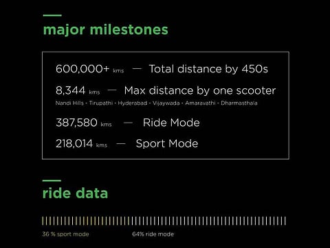 - Of all the Ather 450s sold, the max distance covered by a single scooter is 8344km.