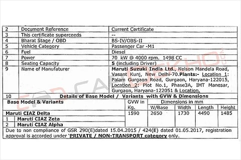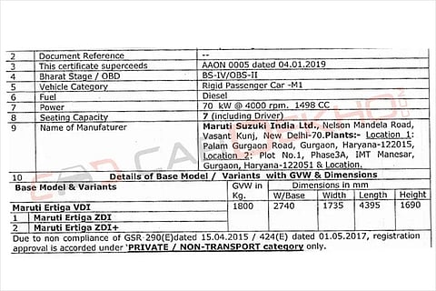Maruti is planning to introduce a new 1.5-litre diesel engine on the Ciaz and the Ertiga. As reported earlier by CarDekho, this new engine makes 95.1PS of maximum power and 225Nm of peak torque. An official document now confirms that both the Maruti cars will get this engine on all variants except for the base Sigma (Ciaz) and LDI (Ertiga).