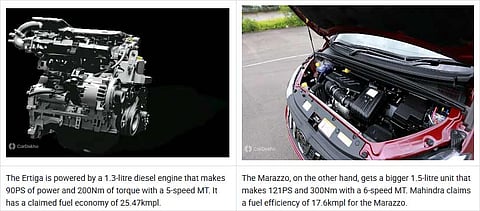 Maruti Ertiga is one of the best selling MPV in the country right now. However, how it fares against its closest competitor -- Mahindra Marazzo -- in terms of styling and pricing? We find out in the in-pics comparison.