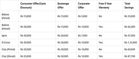 If you’re planning to buy one of Maruti’s Nexa models this September, then you’re in a spot of luck as there are a few offers available. Everything apart from the recently launched XL6 come with a variety of savings in the form of exchange offers, corporate offers and free extended warranty.