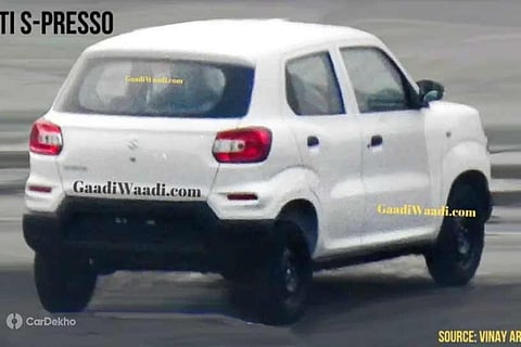 The Maruti Suzuki S-Presso rear end has spied in two variant levels and exterior colours.