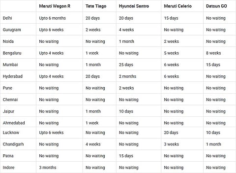 Planning to buy a compact hatchback this month? We have compiled a list of waiting periods in 14 cities across India to help you find out how long you’ll have to wait before getting your hands on your favourite car.