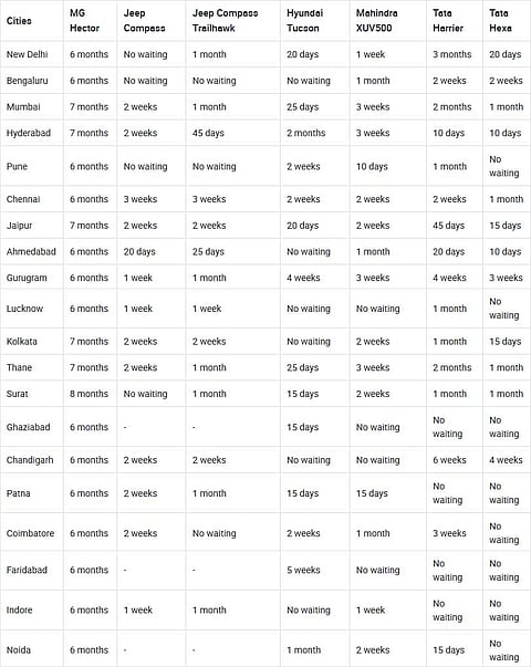 Longest wait for a Harrier is 3 months for Delhi buyers while average waiting period is around 1 month.