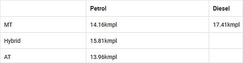 Most frugal petrol engine is with the mild-hybrid tech at 15.81kmpl, while regular petrol-MT claims 14.16kmpl, petrol-auto at 13.96kmpl.