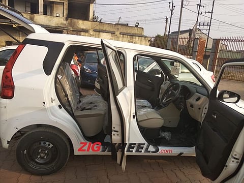 Starting with the exterior, we can tell that the variant spied is likely the new top-spec version. We spot a sliver of chrome inside the headlamps, foglamps, as well as a rear defogger/wiper. There are still no alloy wheels here, but we’re sure Maruti Suzuki will offer them as accessories. Finished in a rather sombre shade of white, the 2019 WagonR doesn’t deviate too much from the original design language we’ve seen over the past two decades.