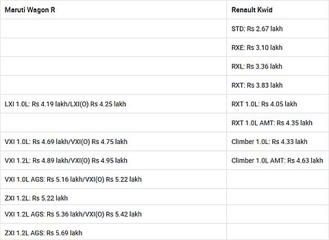 The new 2019 Maruti Wagon R was launched in Jan 2019 at a starting price of Rs 4.19 lakh (ex-showroom Delhi). It’s been thoroughly updated to take on its rivals like the Hyundai Santro, Tata Tiago and Datsun GO. However, its pricing also makes it an alternative to higher variants of lower segment cars such as the Renault Kwid. The Kwid is Renault’s only small car offering and falls under the entry-level hatchback category. We pit the similarly priced variants of these cars against each other to see which offers better value for money.