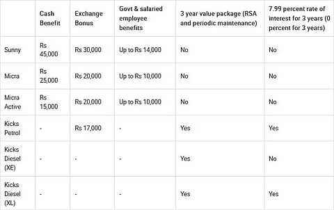 Nissan Micra, Micra Active and Sunny get different cash discounts.