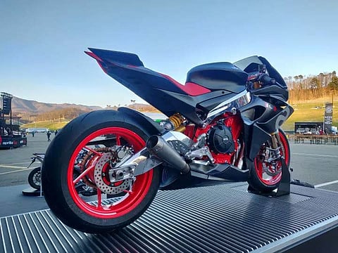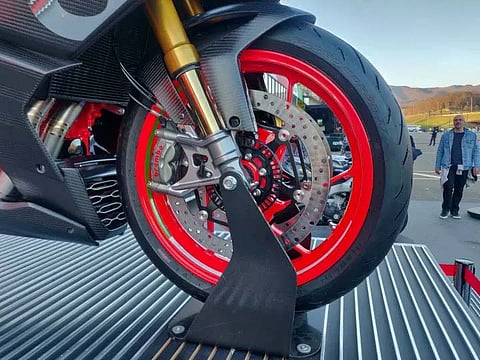 It gets its fair share of top-spec components like TIN-coated Ohlins NIX fully-adjustable USDs, Ohlins TTX rear-shock, Brembo M50 monobloc calipers and Pirelli Diablo Rosso II rubber.