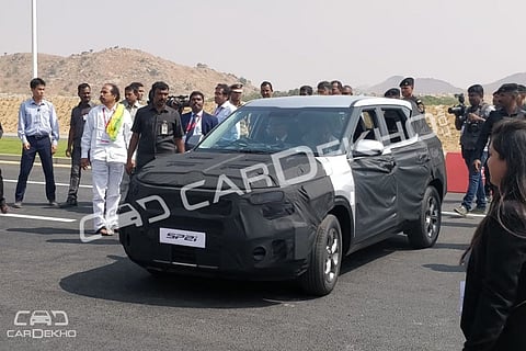 South Korean carmaker Kia has been dropping details of its upcoming SP Concept-based compact SUV for some time now. Set to be the company’s first-ever product for the Indian car market, the SUV has been showcased at an event held at Kia’s manufacturing facility in Anantapur, Andhra Pradesh. Codenamed the SP2i, the compact SUV that was showcased at the event was heavily camouflaged. However, it does give us a fair idea of what to expect from Kia’s upcoming 5-seat compact SUV.