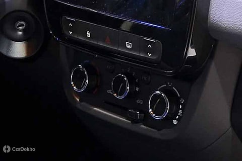 Like the standard Kwid, the K-ZE gets a manual AC. But the position of the control unit is different. Where the India-spec Kwid the three AC knobs placed just below the infotainment screen inside the piano black housing, the K-ZE features them at the bottom of the centre console below the front power window switches and hazard light button. The Brazil-spec Kwid uses a similar setup.