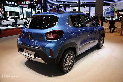 The side profile looks identical to that of the standard Kwid with design elements such as flared wheel arches with body cladding and roof rails.The K-ZE offers ORVM-mounted turn indicators and dual-tone machine-finished alloy wheels, both of which are missing on the India-spec Kwid. Instead, it gets full wheel covers and fender mounted turn indicators. The K-ZE also features 14-inch wheels, which are a size larger than the ones on the India-spec Kwid, with 165/70-section tyres. Interestingly, the K-ZE’s wheels have four lug nuts compared to India-spec Kwid, which only has three on each wheel.