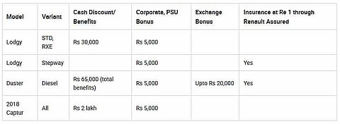 Lower-spec Lodgy variants get discounts of upto Rs 35,000.
