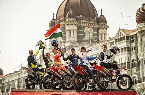 The six-rider group did three sets of stunts of 15-20 minutes each, of which the six-man tandem run was perhaps the trickiest and most enjoyable to watch. The group was led by FMX legend Robbie Maddison astride a KTM 450. Maddison is the man responsible for executing several motorcycle stunts in movies, some noteworthy ones being his stunt work for the protagonists' roles in the Vin Diesel flick xXx: Return of Xander Cage, and as James Bond in Skyfall.