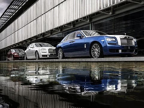 Yes, the Ghost Zenith Edition gets its exclusive Spirit Of Ecstacy that has the tag ‘Ghost Zenith’ engraved on it. The Zenith is available in three dual-tone colour options with a gloss-contrast paint finish - Iguazu Blue with Andalusian White, Premiere Silver with Arctic White or a daring Bohemian Red with Black Diamond.
