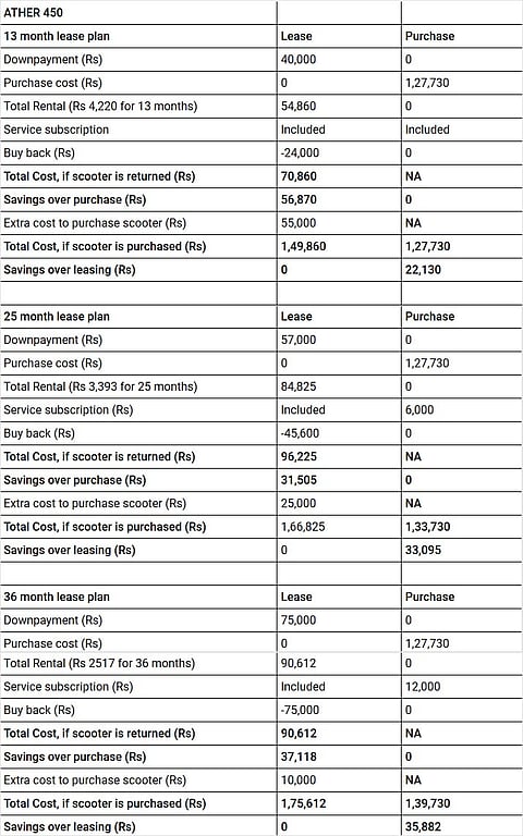 Ather Energy’s lease plans for its scooters, the 340 and the 450 have officially commenced with a Bengaluru man opting for the Ather 450 on lease. Compared to the current crop of two-wheelers, feature-laden electric vehicles, such as the Ather scooters, come at quite a premium. That said, electric vehicles are a more cost-effective means of transportation, at least in terms of running costs. Hence, leasing does make sense if you’re in the market for a temporary mode of personal transportation. With this in mind, Ather’s lease plans range from 13 months to 36 months for both the scooters. For better understanding, here’s a cost analysis of the different permutations and combinations of the lease plans for the top-end 450: